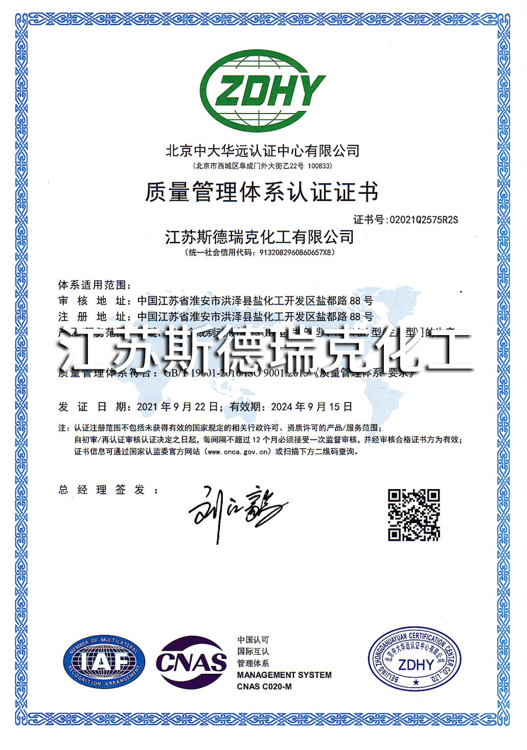 江蘇斯德瑞克化工有限公司成立于2002年,是一家集研發、生產和銷售一體化的“國家高新技術企業”,F有員工100多人,其中科技人員占20%以上;位于江蘇省淮安市鹽化工園,占地面積180畝,建筑面積達38000多平方米。